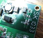 и идут на базу транзистора… транзистор 2PB709AS, маркировка - BS, расположен(координаты): 27мм слева платы и 8мм снизу; с другой стороны платы почти над ним расположен зеленый пленочный кондёръ. Так вот на коллекторе транзистора этого(одинокая нога, смотрит в сторону задней крышки передатчика) - амплитуда отрицательных импульсов =5в