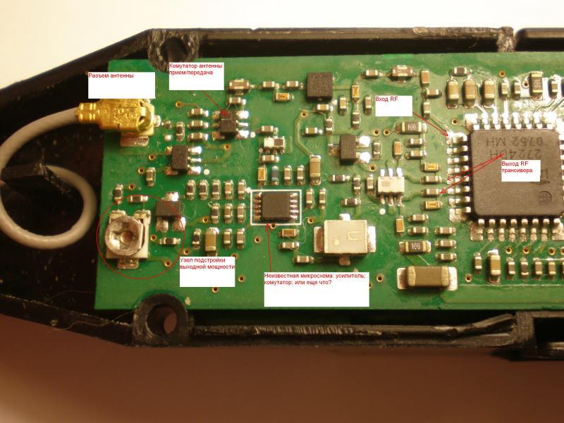 Саша узел подсторойки выхода на самом деле схема защиты передатчика от включения без антены в простонародии КСВ или точнее КБВ метр именно смешение управляющего питания по даташиту регулирует выходную мощьность при передаче, в данной ситуации выход регламентируется прошивкой а 2724 это всего лиш проц аналогичный по спасобностям всем известной меги 8 или аналогам а сама ВЧ часть собрана на этой микрухе находящейся сверху фото а 10и ногая микра ничто иное как RX часть.