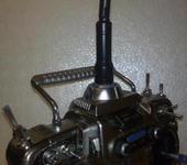 Не совсем просто, и не выкручивается. Если помните, антенна не просто выдвигается, а еще и поворачивается на нужный угол в шарнире, т.е. выходит наверх полностью, с первым коленом. То, что ее держит, скользит в латунной трубке внутри корпуса, а чтобы освободить ее от того, что скользит в трубке - см. выше.
