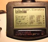 Для бабочки нужен Aileron+ - выбираем. Далее в меню этого микса выбираем Spoiler и пропустив позицию offs (потом настроите мертвую зону как вам нужно), в позиции trv ставим отклонение элеронов в %, для большинства пенолетов примерно 80-90% вверх (смотрим куда отклоняются и при необходимости меняем знак кнопкой REV/CLR), для планеров типа Супра, Графит - смотрим рекомендации производителя, гуру, курим форум, пробуем и настраиваем под себя. Все на этом этапе бабочка должна работать. Дальше нужно в меню Elevator+ настроить микс РВ на спойлеры - смысл задавить планер вниз при выпуске бабочки.