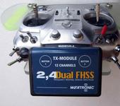 ВЧ -модули Веатроника одинаковы(пока) для любого пульта. Разница в переходничках втыкающихся на место штатного ВЧ-модуля. У Футабы есть странная заморока с региональной принадлежностью ВЧ-части.