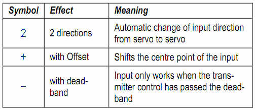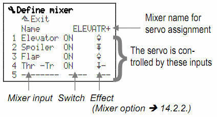 Начну с того что в инструкции есть недоработка. Все (большинство) читают с лева на право, а в инструкции важная информация дается с право на лево, поэтому она плохо воспринимается. Чтобы сконструировать любой микс нужно определиться какие входные функции влияют на сервомашинку(СМ) и следовать строго схеме.