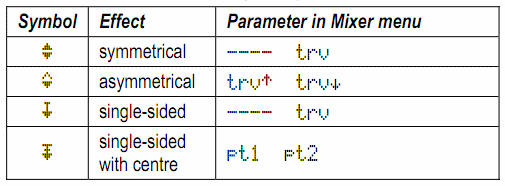 offs – смещение (параметр); задается в меню Mixer (значек суммы);