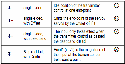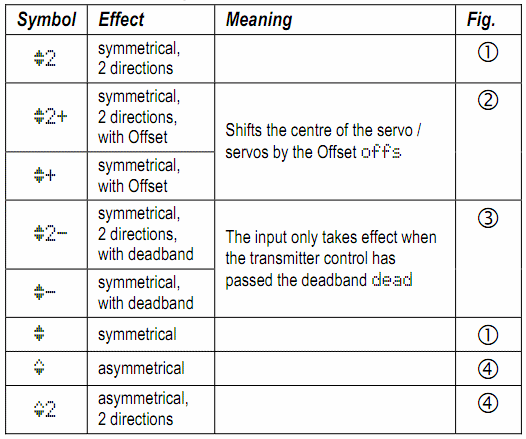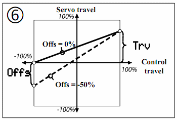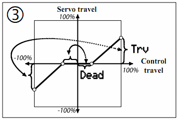В меню СМ, в подменю “Calibrate” вы можете настроить траекторию движения СМ как по 3м так и по 5и точкам в диапазоне хода от -100% до +100%, что очень актуально для шасси.