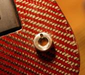 верх и низ столика соеденены через трубки, которые крутил прямо на “рогах” из стеклоткани и угольного ровинга. Дюралевые грибки сверху служат во первых для предотвращения проворачивания рогов вокруг оси(в пропил на грибке входит штифт на роге) во вторых для декоративных целей, прикрывает место вклейки трубки в верхнюю поверхность стола.