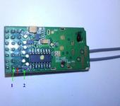 Красная- место разреза- правильно. Тестером убедиться, что дорожка полностью обрезана. От места разреза оголить дальше дорожку в сторону 2 и припаять к ней провод. Как бы аккуратно с припаянным проводом не обращаться он обязательно оторвется вместе с дорожкой, а то и резистором. Обязательно припаянный провод зафиксировать каплей термоклея, а после одевания пластиковой рубашки еще и в ней. У любой липольки есть балансировочный разъем, в него и пихать, можно одну банку контролировать, можно 2, 3, но не более 4. Если этот провод никуда не пихать, то передатчик будет пищать и показывать 0,6 В.