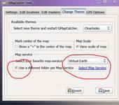 Чтобы начали открываться карты в программе нужно на диске создать папку для хранения карт с любым именем (у меня GMap) и выбрать её во вкладке setting в настройках. И во вкладке Chnge Theme поставить галочку, разрешающую обращаться к другой папке.