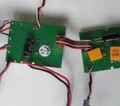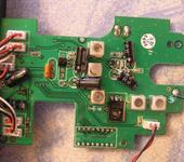 А корпусной транзистор ( который не считая выходного ) - м.б. стабилизатор на 5 вольт ( что-нибудь типа 78L05 ).Бортовая часть - не разглядел название микросхемы-восьминожки внизу ВЧ-платы. Там еще вроде пьезогироскоп ( вторая блестящая железяка ). Зачем 8 проводов между платами - тоже не понял, смотреть надо. М.б. и 4 уже дешифрованных канальных импульса идут. ПЧ там, скорее всего, те же 455 КГц, судя по надписи на желтом пьезофильтре с другой стороны платы ( и на втором по идее что-то подобное должно быть написано ).