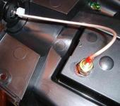 Разобрал пидаратчик, свинтил 35Мгц антенну, просунул 2,4Ггц антенну в верхнее отверстие, наконечник выпустил через дырку …И фсё. Антена с натягом крутится .