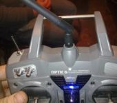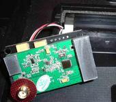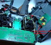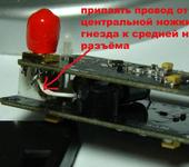 модуль вставлен во внутрь аппаратуры между механизмов стиков и закреплен на плате переключателей тримеров . Светодиод выпаян и удлинен , засверлено под него отверстие на лицевой панели и вклеен на циакрин.
