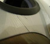 Зашкурить, выровнять,загрунтовать,аэрографию и под лак. И никто не узнает.