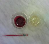 Провел колеровку чернилами гелиевой ручки. Результат похожий. Цвет уходит в синеву и смахивает на клюквенное варение.