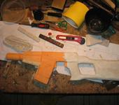 Сделал болванку автомата из экструдированного пенопласта, в данный момент покрываю составом клей ПВА + гипс, и зашкуриваю, чтобы придать болванке гладкую форму.