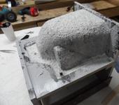 После удаленя пластелина кое где образовалась маленькая бороздка 1мм. в глубину примерно. Пластелин вроде ровнял по плоскости матрицы. Такое впечатление что он вылез в процесе оклейки болвана.