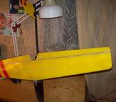 С этим крылом уже ни чего не делайте,так и летайте. А чем не устраивает,то что имеете? Если новое крыло хотете покрыть стеклотканью,можете попробовать по позитивной технологии,но так как у вас крыло из потолочки и скорей всего наборное,вакуумом вы его не задавите,если сделаете такое же,скелет весь вылезет наружу.Нужно сделать крыло из цельного куска твердого пенопласта,тогда его можно будет красиво покрыть стеклом и покрасить.
