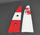 Используется специальная (слабо липкая) плёнка Orafol. Покупаем в фирмах, которые поставляют материалы для рекламщиков. В зависимости от сложности рисунка режем либо просто ножом, либо на плоттере. При помощи плёнки-переноски наносим на матрицу, на которой лежит разделитель, сохший ночь. Красим и, во избежание подрыва краски, немедленно снимаем. Используем 2К автомобильные краски. Сначала тёмные цвета, потом с перекрытием светлые. Плёнка снимается легко, разделитель не забирает. Самое сложное - так рассчитать последовательность окраски разных участков разными цветами, чтобы незамедлительно после откраски одного цвета снять плёнку и перейти к окраске соседнего участка другим цветом. Очень хорошо при этом иметь более одного пистолета, либо научиться очень быстро мыть для использования со следующей краской. Если передержать несколько лишних минут, то при снятии трафарета край краски будет подрывать. Не критично, но не будет идеально ровной линии. Через 12-15 часов сушки можно формовать.