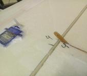 Вес одной консоли 180 грамм, при этом две сервы в крыле и стыковочный пенал, скрученный на бумаге с тем же ПВА Д3. Кстати… пенал делается весьма просто. Сначала бумага набухает, затем усаживается при высыхании на алюминиевом стержне, затем спокойно снимается и далее насаживается плотно в притирочку, без люфтов. Использую квадратный алюминиевый профиль 10х10х1.5мм из строительного магазина, в качестве штыря или болвана для формовки пеналов. Пенал вклеен между полками лонжерона, на тот же самый Д3 и полки по всему размаху вклеены на Д3(не разбавленный). Вообще, во всем самолете применено 2 клея, Д3 и титан. Титан в узких узлах, где дерево к текстолиту надо клеить, в остальном везде Д3. Кабанчики в прорезь вклеены на Д3 и закрыты стеклом.