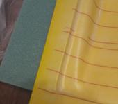 Ламинат ложу в форму послойно на краску и промазываю кисточкой,сначала стекло 0,03мм 30гр м кв плейн,потом э-3/1-100 0,1мм 100гр м кв. 4 слоя,ламинат пучится в углах!,далее кусочками жертвенную ткань ,далее кладу кусочками перфоплёнку Р3 ,
