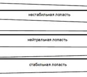 выступающая лопасть вперёд цапфы: менее стабильная, но более менёвреная