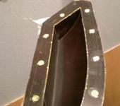 так как у меня не было ровинговой ткани, то мыкался я с тканью 285 г/м2. намыкался до толщины 3-4 мм.