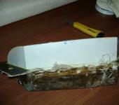 итак, половинка матрицы фонаря благополучно застыла. была снята и осмотрена на наличие дефектов. а они есть: в 2 местах на геле обазовались пузырьки, которые снаружи при осмотре я не заметил. ну это ремонтируемо легко относительно. другой дефект вызван податливостью материала, используемоо для заделки шва между болваном и разделительной плоскостью- пластилин продавился- давил то ведь я на него немеряно. чтобы исправить выпуклость придется вынимать болван, сошкуривать излишек, и только потом приформовывать вторую половинку матрицы. Виталий, что вы посоветуете? для себя уже решил, что когда буду делать матрицы фюзеля буду использовать наполнитель на основе эпоксидки.