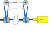 схему нужно городить это если вы захотите останавливать станок, компенсировать разность хода, и запускать его заново. В любом случае это механически проще чем городить огород с ремнями.