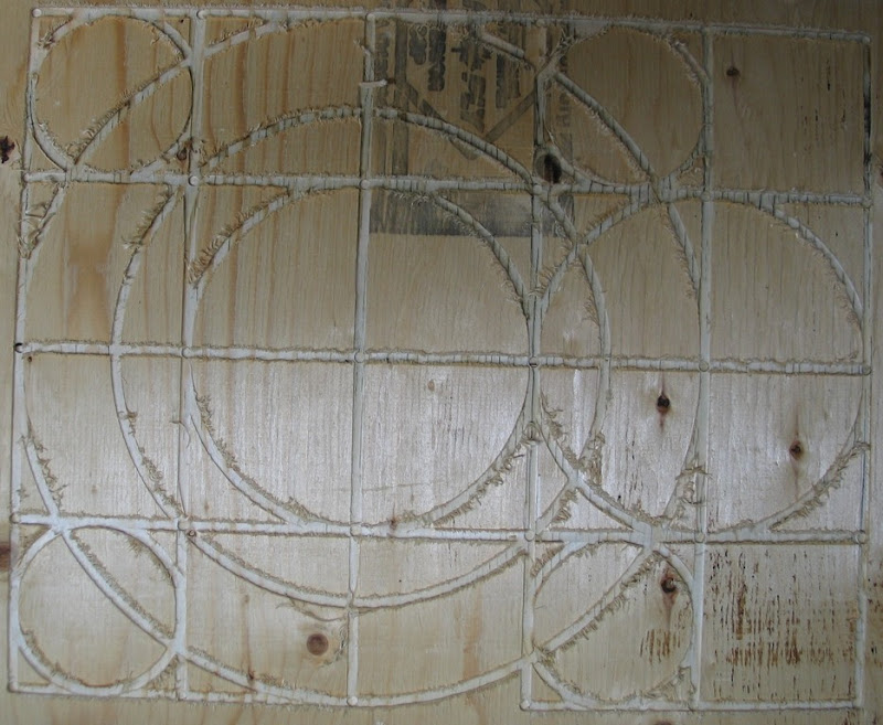 Каждый квадрат пилится независимо по центральной линии. Офсет между квадратами 0. Т.е. каждая сторона соприкасающихся квадратов пропиливается дважды (от каждого квадрата по пропилу). Пропил идет с заглублением в 2мм. В каждом углу квадрата фреза высверливает на глубину 4мм. Т.е. внутри каждое полуотверстие сверлится 4 раза (точка соприкосновений 4 квадратов). Большие круги и малые сделаны для проверки геометрии (элипсности). Каждая окружность пересекает узлы квадратов. После того как станок это напилил (фреза 1/4" или 6.35мм) достал фрезу, перевернул вверх ногами и пошел водить руками по пропиленным кругам и квадратам. Если проходит туго то погрешность минимальна, если проходит легко то идет небольшой уход. То-же и с отверсиями. Если фреза туго лезет то хорошо, а если легко проваливается то было смещение.