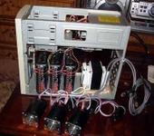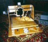 Начинаю писать этот опус исключительно из тех соображений, что вспоминается, как мучительно не хватало мне подобной статьи в феврале 2005, когда я, плутая по Интернету в поисках инструмента для гравера наткнулся на сайт infamania.boom.ru. Информация о существовании хоббийных CNC стала для меня откровением и я твердо решил, что обзаведусь таким же. Стоит сказать, что человек я практичный (как мне кажется) и кроме увлекательного хобби имелось и практическое применение к моей работе. Сразу отмечу: инженерного образования у меня нет, только академическое, паять я не умею в принципе. Поэтому не было никаких чертежей, просчитанных в Солиде и отданных на завод, все по наитию. Станок предполагался хоббийного класса, поэтому не пинайте сразу. Не стоит его сравнивать, скажем, со станком, например, многоуважаемого Графа или abonent’а – там уровень другой, но и бюджет тоже. Кроме того судя по всему это умножено на нехилые знания и опыт. Итак, первый этап: желание собрать все из подручных материалов и мусора. Все-таки совсем из ничего получится, пожалуй, только так называемый плоттер, т.е. рисовалка фломастером. Как и многие начинающие станкостроители, я прошел фазу «фанерной этажерки». Наверное, у многих вызовет улыбку мое первое детище, но мне не жалко потраченного времени и сил (а их было очень много). Для человека, никогда прежде этим не занимавшегося я думаю этот этап обязателен. Начинать лучше с малого и наверное, взявшись сразу за что-то серьезное ничего бы и не вышло. Итак, «первый блин»: основание и стол – мебельный щит. Стойки и все остальное – фанера 10мм. Винты – строительные шпильки М8. Гайки – капролон. Вместо фрезера – мотор от подольской швейной машины с кулачковым патроном. Направляющие по Х – мебельные «телескопы». По Y и Z – от принтеров. На сало ушли в сумме: два принтера Epson LX1030, один Epson LX1000(не пригодился), два HP DJ 600. С движками была засада – слабые очень. Единственные пригодные – шаговики на подаче бумаги от hp dj 6** (через родной редуктор естественно). Получится катастрофически медленно, но работать будет. На свою беду после усиленных поисков нашел ДШИ-200-1-1. Мощнее принтерных намного, удобные крепления, вал, но есть одно но – глючные. Резонанс, гад. Нервов измотали много. Заставить их работать корректно со схемой на L297/298 так и не получилось. Контроллер заказал одному хорошему человеку за 3000км. Долго его мучал, палил 3 раза пытаясь заставить моторы работать, отправлял на ремонт, в общем, долгая песня. Нет, конечно заставить ДШИ работать корректно, безусловно можно, т.к. у людей они стоят, но тут все упирается в грамотный контроллер. Проблемы с резонансом пропали как только я выкинул ДШИ и поставил на их место удачно купленные японские шаговики Applied Motion. В процессе экспериментов менялся и сам станок. И вот, после полутора лет труда и пары-тройки тысяч потраченных рублей на столе стоит это чудо. Итак, подробнее: