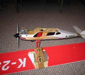 Стоит на тренере, взлётный вес уже 1800 (он подвергся очень сильному ремонту), центровка стала задней, но летает довльно резко, доживает последний сезон, свою роль он выполнил - обучил троих человек.