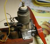 Раритетнейшая весчь! Мотор ессно заводкой, кок такой же как на К-16. Бензиныч наш отечественный, ставился на свободнолетающую модельку размахом 2м, был где то оригинальный чертеж этой модельки. Возможно этот моторчик даже старее чем 50ые годы. АМ…АКА…АК… нет не помню… Вроде должен быть в первой книге Иржи Калины…