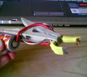 на бочину фюза или в любом ином удобном месте подальше от винта, вкручиваешь гнездо “тюльпан”. От компового БП отрезаешь питательный провод со штеккером(тип - “мама”). Из разъема вынимаешь красный и черный провод с клеммами вышеозначенного типа. Клемму черного провода отрезаешь и припаиваешь плоскую клемму типа “вилка” или с отверстием для прикручивания под болт/винт. Его на мотор цепляешь, на картер. Я под гайку крепежа подкладываю. Крассную клемму типа “мама” аккуратно загибаешь буквой Г так чтобы не смялась сама круглая часть клеммы. Ее надеваешь на свечку. Оба провода другими концами припаиваешь на “тюльпан”.