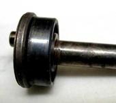 Дело в том, что там нет совсем места дла того, чтобы заложить плечи даже самого мелкого съемника. Смотрите на фото. И обратите также внимание на коррозию вала. Ее надо конечно перед съемкой подшипника удалить мелкозернистым наждаком.
