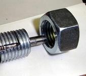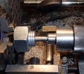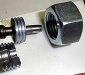 Так что единственный выход - надо было разломать внешнее кольцо и потом снять с вала то внутреннее. Для этого я выточил оправку-съемник из лишнего куска резьбового стерженя М22, которы у меня осталса в качестве отхода при ремонте дома. Будучи моделистом даже такие куски не выбрасываю 😉 - авось на что-нибудь пригодятся.😁 В качестве замка использовал обыкновенную гайку М22