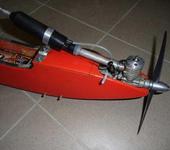Для этого мотора в калильном варианте надо применять винт 200х100 (крутит с ним до 16 тысяч на земле), 180х100 (с ним крутит более 20 тысяч), или 180х75 (около 25 тысяч). С последним была уже проблема со свечами, некоторые перегорали в течении 5 минут, так что надо потом ставить более холодные или уменьшить степень сжатья прокладкой. На винты диаметра 180мм можно ставить МВВСовский глушитель 1/4 волновой ГДН непосредственно, через коротенький переходник, для винта 200мм нужно вставить удлиннительную трубку длинны примерно 60мм (см. фото обеих вариантов в приложении), иначе без разгона не выходит в резонансные обороты. Если с таким удастся взлететь, то резонанс появляется только после разгона пикированием, потом его держит и в горизонтальном полете (конечно мощность тогда приличная), но стоит немного поднять, резонас сразу теряется. Все то, что пишу, было проверено с RC карбом, с диаметром диффузора 4мм (правда там сечение было немного ограничено распылительной форсункой жиклера), а если применить родные кольцевые футорки диаметра 6мм, или даже 7мм, то конечно обороты с даными винтами будут немного выше, но без давления в бак будет его работа очень ненедежной.