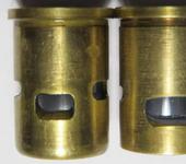 - Гильзы сильно отличаются формой окон. см.фото. Фото сделаны с так чтобы буртики были примерно на одной линии, чтобы можно было сравнить расположение окон.