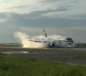 Появились фото испытаний. Хорошо видно куда летит вода (мусор с полосы) из под передней стойки - аккурат в задние движки.