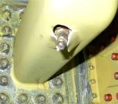 На фото деталь крепления предкрылка В-737 пробила топливный бак, обошлось -