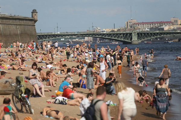 И знаменытый спор между Питерцами и Москвичами мы знаем. Однако народа на пляже много.