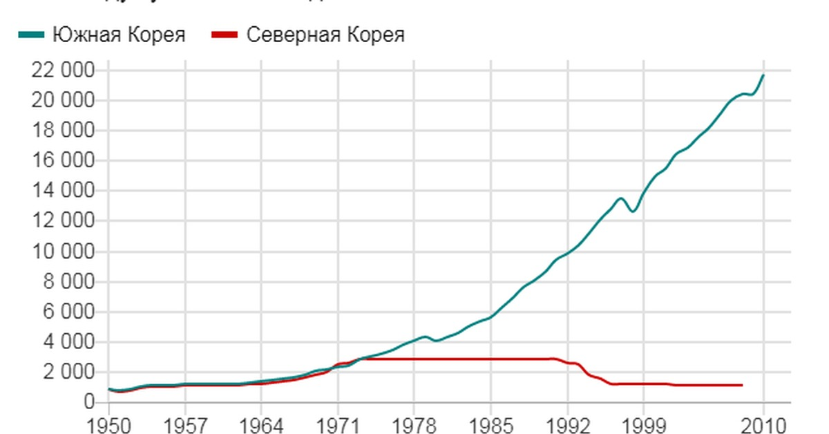 Сравните результаты экономик Северной и Южной Корей.