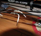 Антенны от приемника, у него они длинные, написано, что концы надо под 90* располагать, где-то встречал фотку такого расположения, так и сделал, по другому не придумал. Ушные трубочки, примотанные нитками и пролитые CA, а в них свободно вставляются антенны (на случай, чтобы их не оторвало, если подкос вырвет).