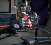 В процессе полетов обнаружил очень сильный нагрев мотора (при надетом фюзеляже обдув практически отсутствует) - установил кулер с видеоплаты (40руб) на кронштейне и температура заметно снизилась.