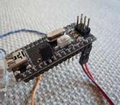 У меня была Arduino Nano v.5, которая хорошо вошла в отсек для RF модуля Турниги, светодиод нашелся старый и слабенький… но какой есть. Последовательно с ним резюк на 330 Ом.