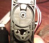 - в штатном месте крепления акума спереди срезаем бортик(ограничивающий батарейку, что бы она вперед не вываливалась), соответственно вставлять батарейку можно спереди, до двигателя. новый двигатель на пару мм тоньше будет, на один с одной стороны. фотка сделана как примерно он будет находиться, ессно он будет в крепеже, а не под ним, пока просто примеряю. минусы у этого варианта: при сильном падении морковкой обо что-то острое типа камня можно теоретически повредить батарейку.