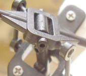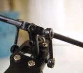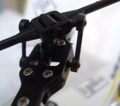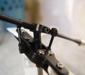 См. мою фотку специально снял флайбар и тяги от него к ротору. в просветах между осью и двумя чёрными квадратами видны стержни на которых крепится ротор. На этих стержнях всё это хозяйство может поворачиваться вверх/вниз где-то градусов на 45(пока не упрётся в ось), но никак не двигаться влево/вправо или крутиться вокруг оси - крутиться должно вместе с осью!