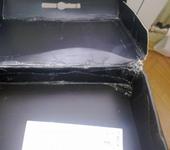 смотрим на коробочку и дух захватывает, фото не передаёт того что было, вдавлено было очень сильно внутрь, место перелома практически ушло в коробок вместе с углом.