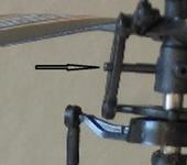А сегодня ветер был чуть посильнее, переставил линки на длинные рога тарелки но полетать не получилось. Причина в том что на хабе еще в самом начале моего мучанья этого вертолета отвалился один из штырей, которые входят в линки что идут от тарелки к качалкам лопастей, в результате довольно часто при резких перекладках правого стика получается вот так