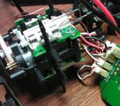 Как я понял в полёте чтото случилось с движком и он коротнул, в результате короткого поплавились провода. Разобрал мотор, собрал мотор, подал на него 1,5В - он даже заработал (до этого не хотел крутиться), но ток при этом составил 2,5А!!! Работает не стабильно, в общем труп… Вопрос остался в работоспособности контроллера. Судя по тестеру в 0 газа напруга 4.1В, при 100% газа плавно падает до 1В, что как то не соответствует реальному миру:) Я так понял что контроллер тоже не выжил…