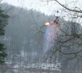 но против него верт почти не шел, несмотря но полностью отданную ручку от себя. Тем не менее в воздухе сидел устойчиво. Погода мерзкая - морось, туман, +2. Из-за широких пилонов для подвески ракет похоже слегка затеняется нижний винт при снижении с большой вертикальной скоростью, поэтому пилон лучше сделать из проволоки. Кроме того, после отстрела по 10 ракет с каждой направляющей они здорово оплавились. На элементах вертолета следов воздействия пороховых газов не обнаружено. В момент схода ракеты поведение вертолета не меняется.