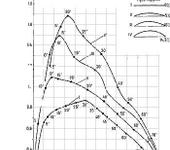 Cуществуют такие графики - поляры - зависимость к-тов Ку(Кх). Если посмотреть на поляры желобков, то видно, что при уменьшении радиуса желобка уменьшается максимальный эффективный угол атаки, т.е. при превышении эффективного угла атаки происходит увеличение сопротивлению вращения (турбулентность за лопастью и пр. неприятности). Максимально эффективным (насколько мне известно) является желобок с прогибом в 15% от хорды (ширины лопасти). У этого желобка при угле атаки в 14,3 гр. Ку прим. 1,68, а Кх прим. 0,33. Да вот график, смотрите сами.