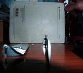 Кончилось всё как всегда крашем. На максимальной скорости в развороте произошёл прерхлёст и очередной раз обрубило тестируемые лопасти. Опять клеить, блин! Лопасти и так уже все из кусочков состоят. Замечу, что гибнут лопасти в основном от перехлёстов и боковых пикирований, когда под малым углом врубаешься в пол. Простые падения и встречи с мебелью и стенами переносятся без особых последствий, если не считать зазубрин и вмятин.